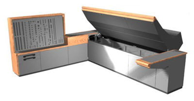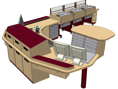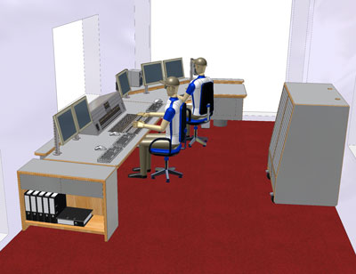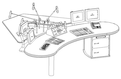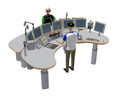 Ein Spezialgebiet von ergoKon: Hier werden Planungs- und Fertigungsunterlagen zur Ausstattung von Rundfunk- und Fernseh erstellt. Dazu gehören z. B. Einrichtungs- und Grundrisspläne, Ansichten von technischen Möbeln, Ergonomie- und Layoutpläne und die daraus resultierenden Fertigungsunterlagen.